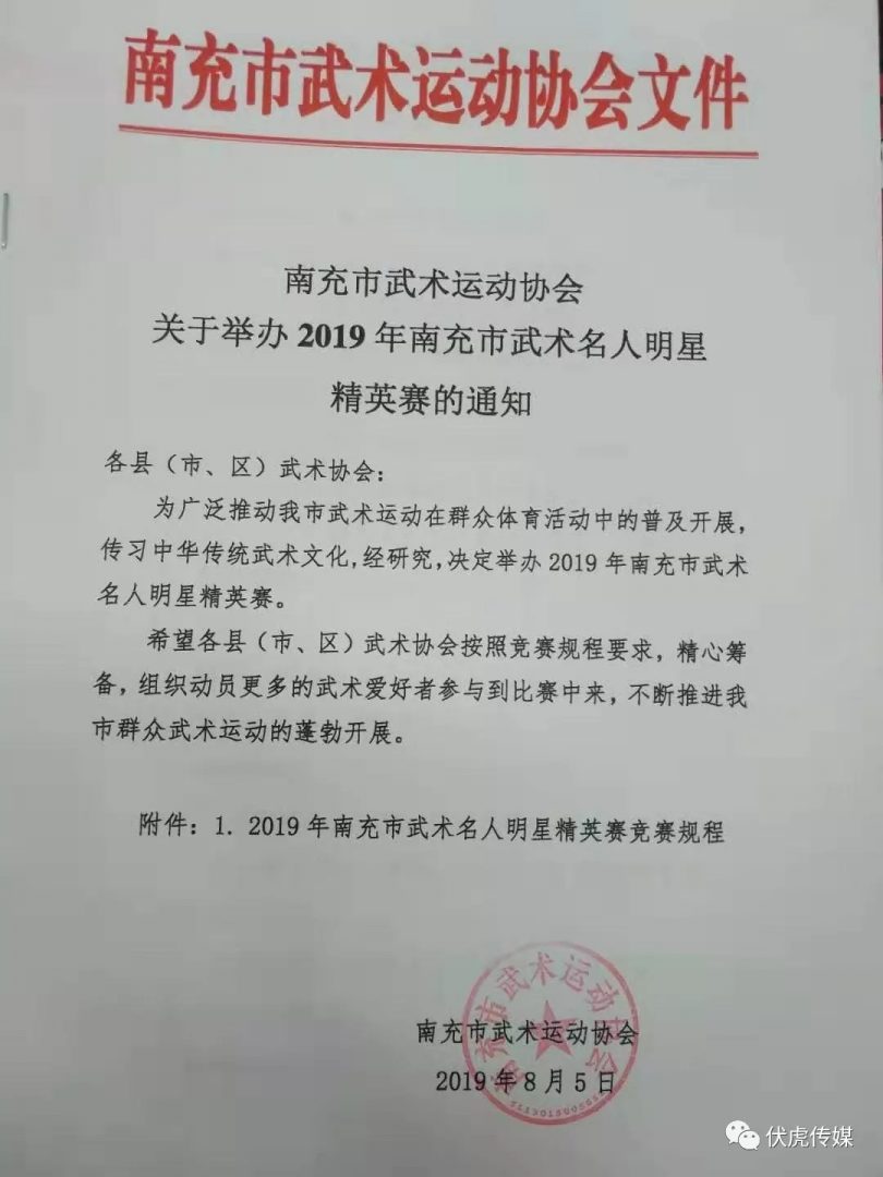 (四)南充市武術(shù)名人精英賽(2019年9月13日至9月15日);