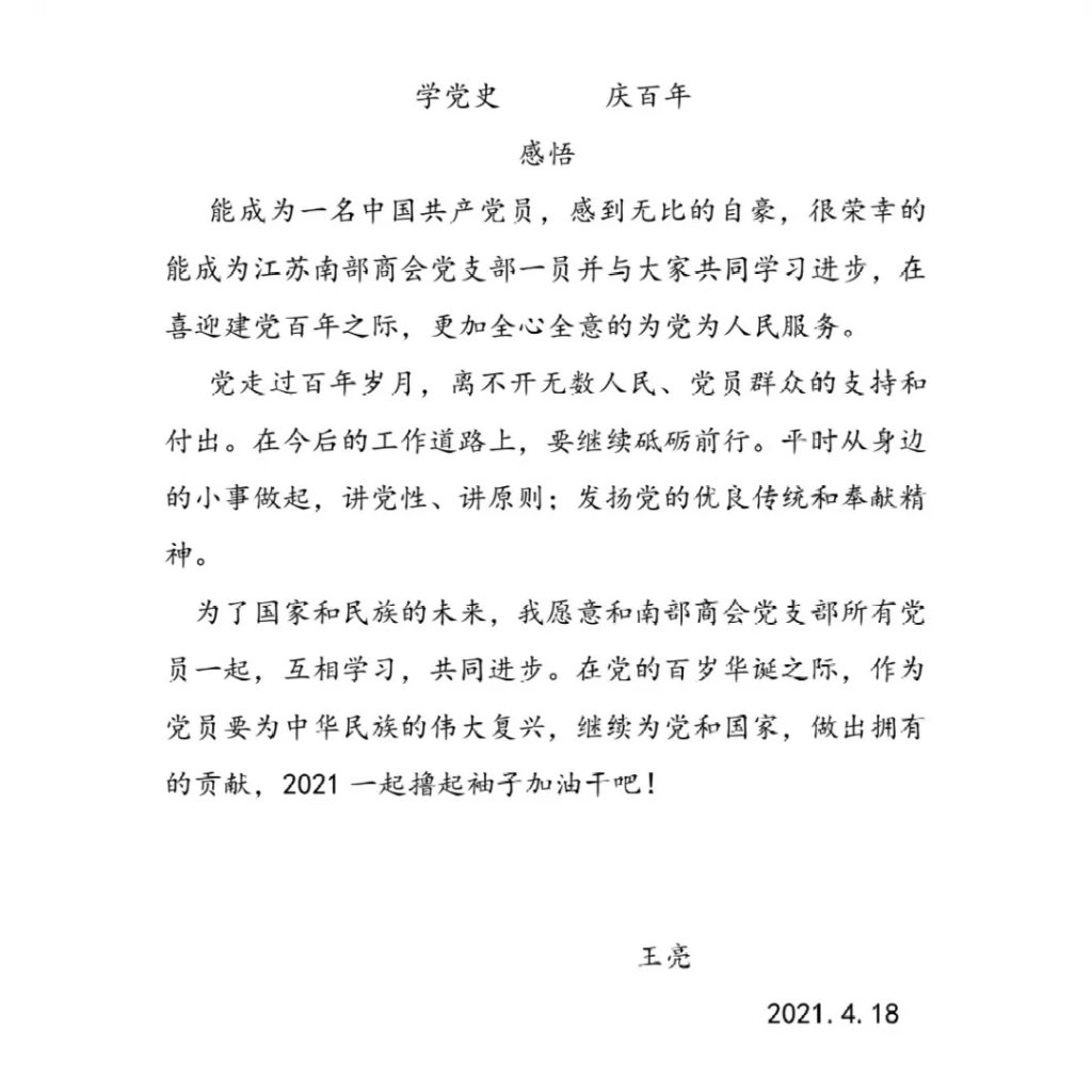 為貫徹落實習近平總書記在黨史學習教育動員大會上的重要講話,深入學習貫徹習近平新時代中國特色社會主義思想,于百年黨史學習中汲取奮進的力量,讓我們循著革命前輩的足跡,了解我黨波瀾壯闊的歷史,同時促進企業家們從黨的百年偉大奮斗歷程中汲取繼續前進的智慧和力量,4月17日下午,四川省江蘇南部商會黨支部組織召開了“慶百年 學黨史”學習會議。